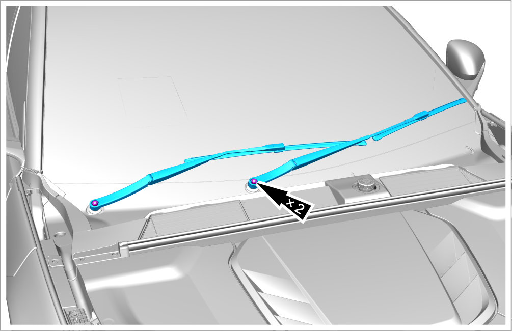 Remove 2 fixing nuts and take out the left and right wiper arm and blade assemblies in turn.