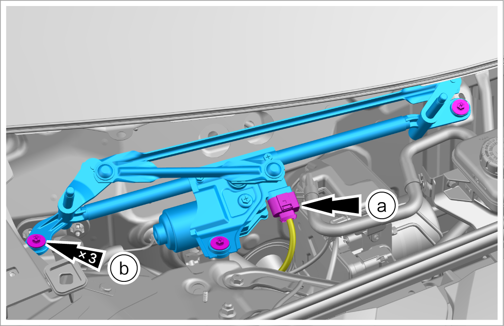 Remove 3 fixing bolts and take out the front wiper drive system assembly.